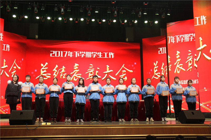 会上🤾🏽,学生科科长周曦对2017年下学期学生工作进行了全面总结,既肯定了上学期同学们所取得的成绩,同时也为学生本学期的学习指明了方向,并对大家提出殷切期望👳🏿:希望大家扬长避短,总结经验🥍👷🏽♂️,改进不足,争取在这个学期取得更大的进步➞。学生科副科长彭繁珍宣读了2017年下学期优秀集体和优秀个人获奖名单💁,周文华等与会领导为获奖班主任及学生颁奖。接下来⛹🏻♂️,学生代表1615班李雨洁发言,她用自身奋斗经历告诉学弟学妹们,只要有目标🧑🏼⚕️、肯拼搏🤽🏽♂️,付出终会有回报🦺,平凡人也有人生出彩的机会。