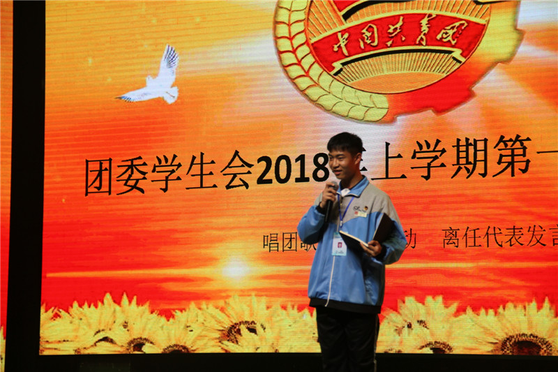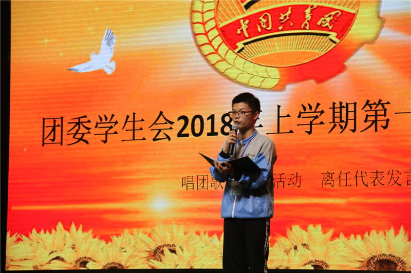 学科部部长丁世龙代表即将毕业的学生发表了离任心得🥷,他说两年了,从一名国旗班成员到国旗班班长再到学科部部长,他看到了自己的成长,同时在学习和工作中也严格要求自己,很多人都不知道他曾经是一位连踢正步都会垫脚的学生,为了更好的完成工作,他不段的利用休息时间练习,最终有了很好的呈现。他说天行健君子以自强不息,希望学生会的成员认真尽责的完成工作。