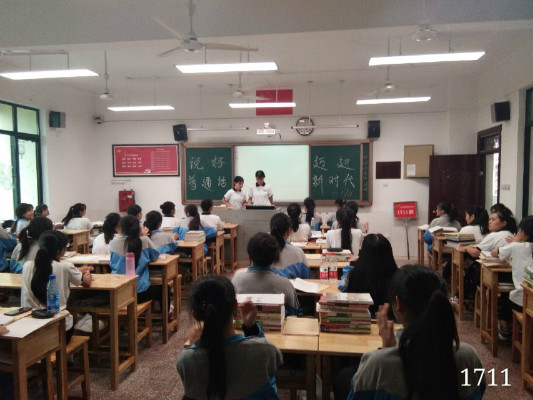 这次班会🟣,同学们都设计的十分巧妙,内容丰富,富有意义,采用多种元素多种形式体现出最精彩的效果🦻🏿。比如说1715班🙂,以做游戏的形式🥍,在游戏中体验普通话的感觉,内容丰富🦼,切合主题,同学们都积极参与,十分的配合,在游戏中慢慢的明白,其实普通话离我们并不遥远,就在我们身旁。1719班🍀,表现十分的出色,纪律也十分的优秀,制作的内容也都是那么的丰富,精彩。讲台上的主持人也都是在诉说着普通话。给人一种温馨的感觉🚫。
