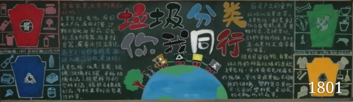 在本次黑板报中表现优秀的班级有很多,比如高一1801颜色用的十分丰富,主题十分突出🕺🏽。让我们更加注意垃圾分类的重要性。1807pop字体写的非常的好 ,采用了卡通的形式🤱🏿,让人觉得眼前一亮🧔🏻‍♀️。1805的字体也非常的亮眼,中间的手掌印和垃圾桶使主题更加明显突出。1804中间的手掌托着地球寓意深刻。