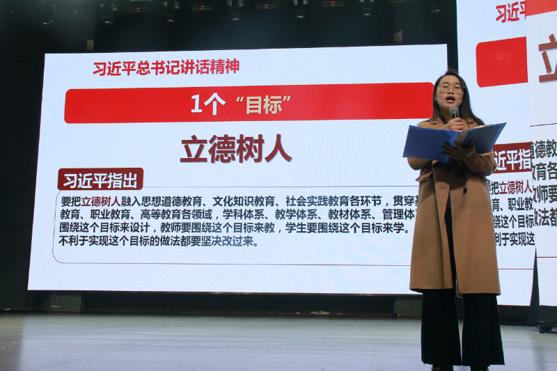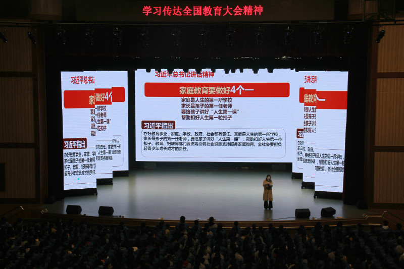 为响应教育部党组印发«关于认真学习贯彻全国教育大会精神的通知»的文件精神,2018年12月24日,长沙市信息职业技术学校团委副书记黄丽辉在学校汇美馆向全校师生宣讲了全国教育大会的会议精神👩🏻🦲。黄丽辉介绍了大会的基本情况及重要意义,随后为大家详细解读了习近平总书记在全国教育大会上的重要讲话精神𓀍,并寄语大家: 作为未来社会主义教育事业的建设者,应及时关注时政动态,准确了解党中央对我国教育事业发展的未来规划和对教育工作者的具体要求,厚植爱国主义情怀🐭,努力将个人发展和国家发展相结合,立志为中国特色社会主义事业奋斗终身!