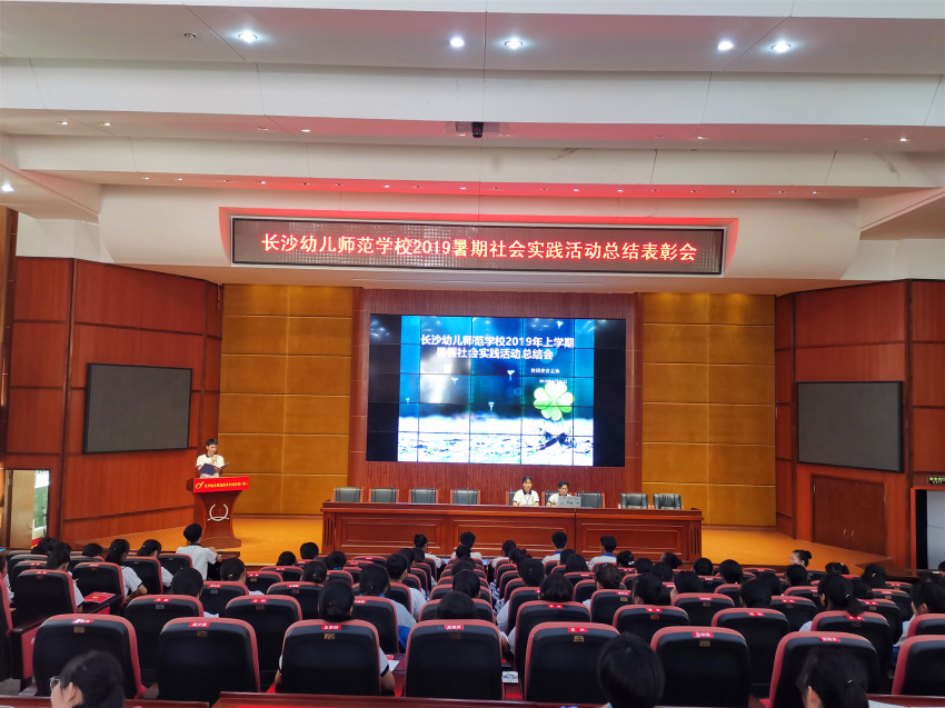 2019年9月24日中午13:00,长沙幼儿师范学校“暑期实践 伴我成长”社会实践活动总结表彰大会在汇智厅顺利举行。本次大会由1812班汤文豪主持,参加会议的有团委副书记冯叶,团委徐丹丹老师和各班班长、团支书以及受表彰的集体和个人。