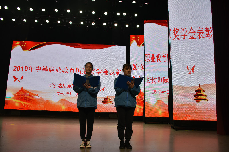 为充分发挥“中等职业教育国家奖学金”这一国家重大政策的激励作用,做好资助育人工作,营造“树立榜样🎊、争先创优”的校园文化氛围🧑🏿‍✈️,2019年12月30日清晨,长沙幼儿师范学校在汇美馆举行2019年中等职业教育国家奖学金表彰大会。