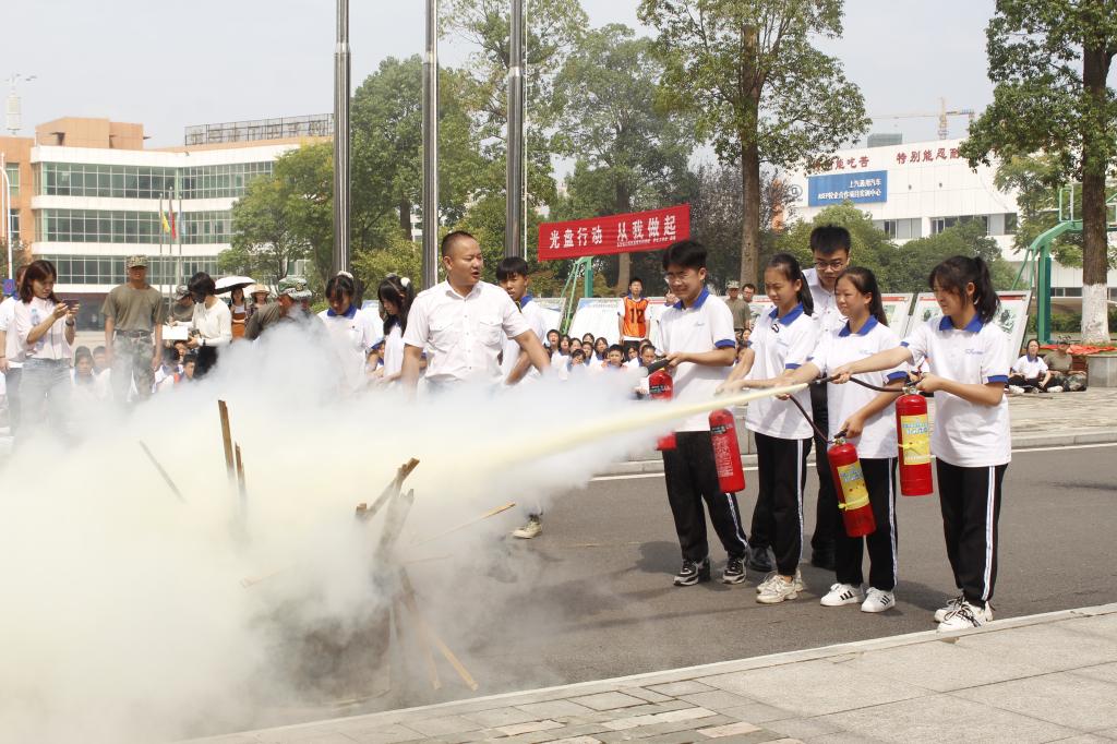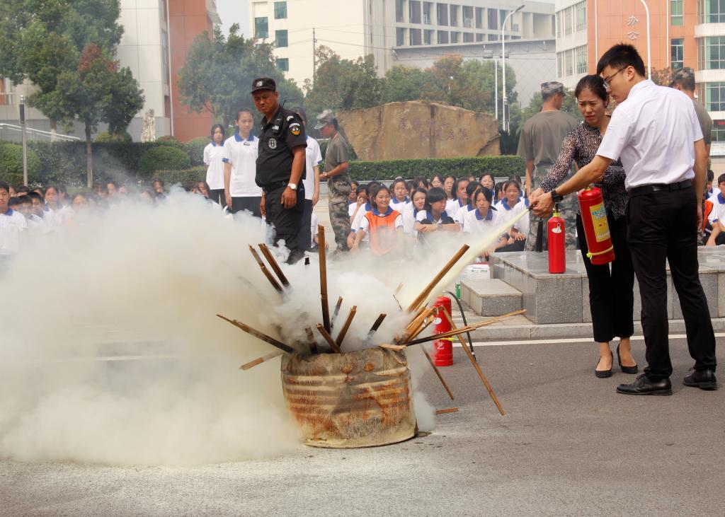 演习开始之前,湘安消防公益服务中心李兵为参加演习的全体人员开展消防知识讲座,讲解了灭火器的使用方法,疏散演习的方案和注意事项。讲座由保卫处副处长余金凡主持。讲座结束后参加演习的师生踊跃参与灭火器使用实操。