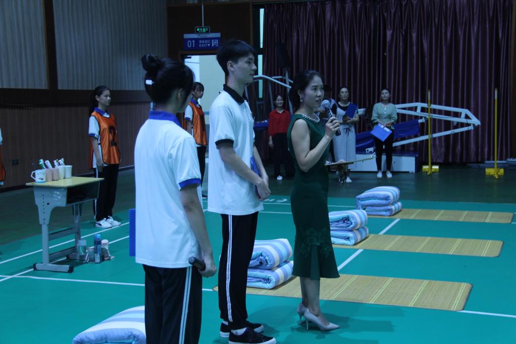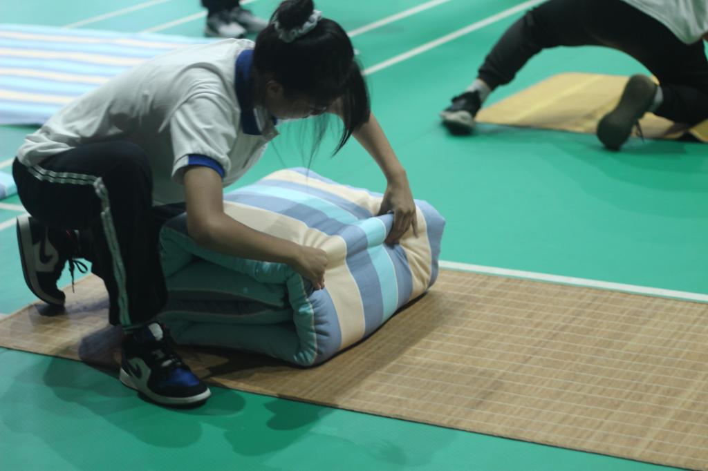 比赛前,主持人宣布了本次比赛的规则。比赛分个人赛和团体赛,个人赛限时三分钟,以时间最短和比赛结束后被子情况为评分标准;团体赛限时十分钟,比赛模式为五人进行接力,前四人叠被子接力,最后一人进行漱口杯摆放,以时间最短以及比赛结束后被子和漱口杯情况为评分标准。