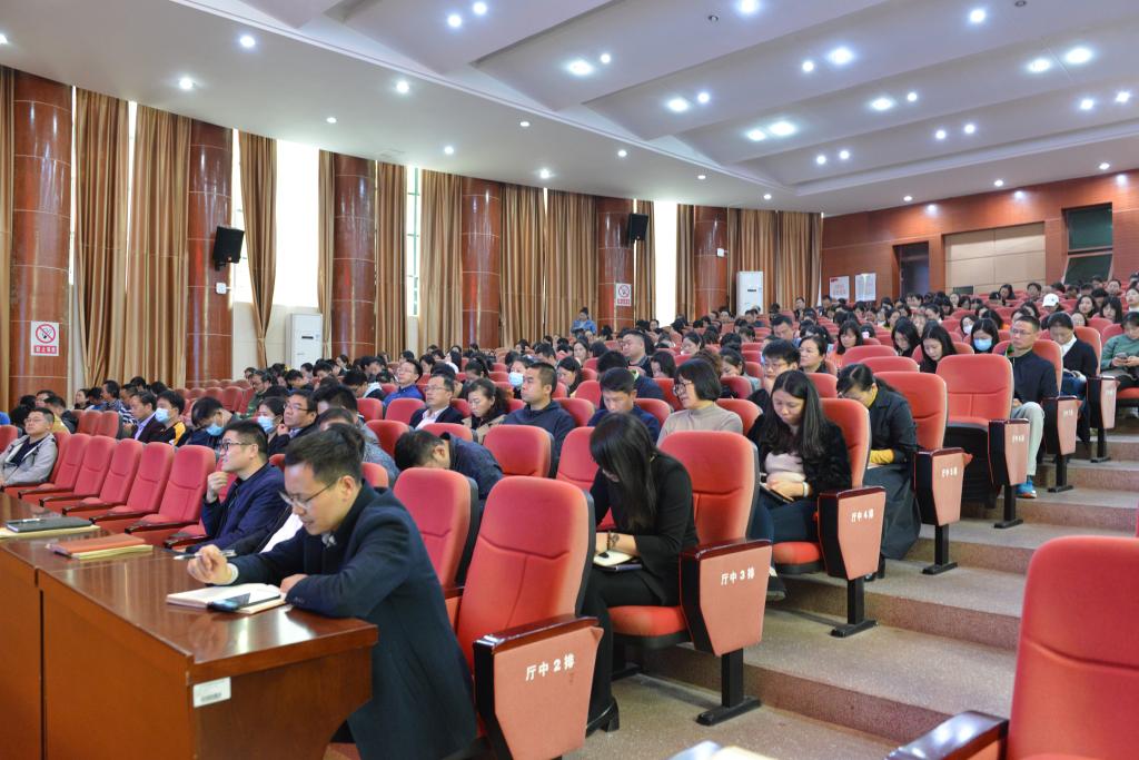 11月23日,我校在汇智厅召开垃圾分类示范校建设工作推进会。全体教职工参加,会议由副校长文孟飞主持召开。