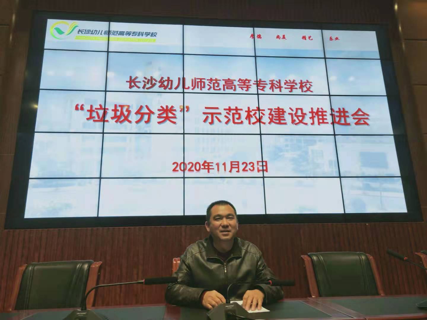 会议第一项,文孟飞阐述创建垃圾分类示范校的背景和意义。建设垃圾分类示范校是积极响应习近平总书记的号召“垃圾分类就是新时尚”,是落实《长沙市生活垃圾管理条例》的具体举措,是学校作为育人主阵地的应有之义,积极创建垃圾分类示范校,有助于改善校园环境,落实立德树人目标,提升学校精细化管理水平,引导师生形成绿色、健康的生活习惯,展现我校师生文明形象,是推进省文明标兵校园创建的重要抓手。