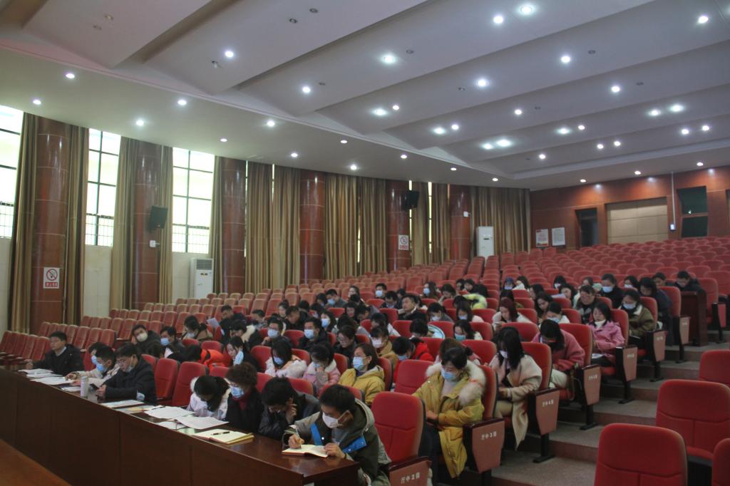 为深入贯彻落实立德树人的根本任务,进一步深化三全育人的体制机制,促进学生的全面发展,2月27日下午,2021年春季开学辅导员、班主任工作会议在汇智厅召开,党委书记张国斌、副校长文孟飞、学工处处长彭繁珍、学工处副处长彭亮、学工处副处长兼团委副书记祝居里、各系主任、德育副主任、德育干事、全体辅导员、班主任、校医及全体学工人员参加会议,大会由文孟飞主持。