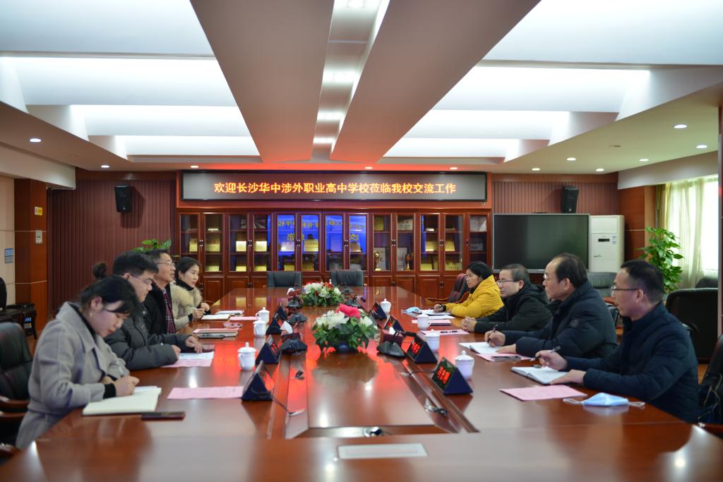2021年1月21日下午,长沙华中涉外职业高中学校董事长兼校长卢中友一行4人来我校进行“三自教育”实践活动交流。学校校长郭正良☘️、学工处处长彭繁珍👳🏻♂️👵、副处长彭亮、德育干事廖小勇参会🚝,交流会在广益厅召开,彭繁珍主持会议👩🏽🎓。