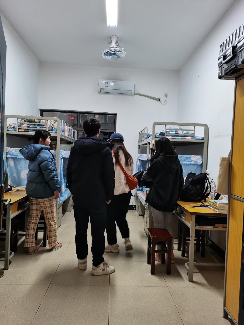 3月19日221️⃣:00,学生工作处处长彭繁珍带领各系部德育主任、学工处宿舍管理老师和全体辅导员深入大专生宿舍,送去深切关怀🤧。