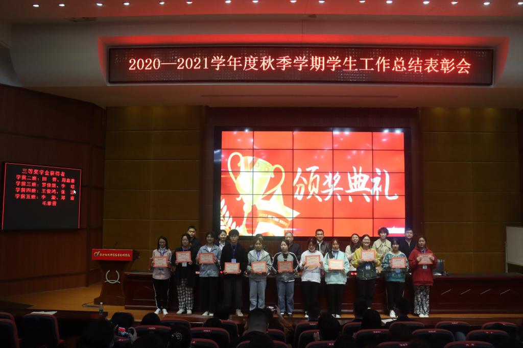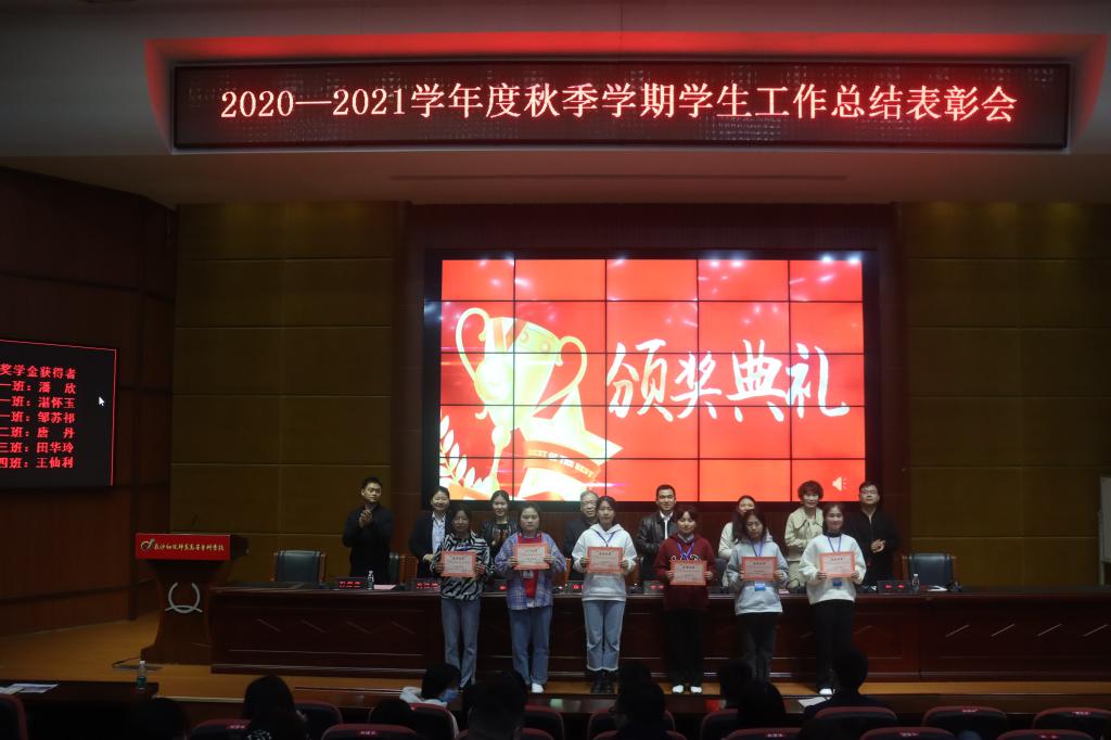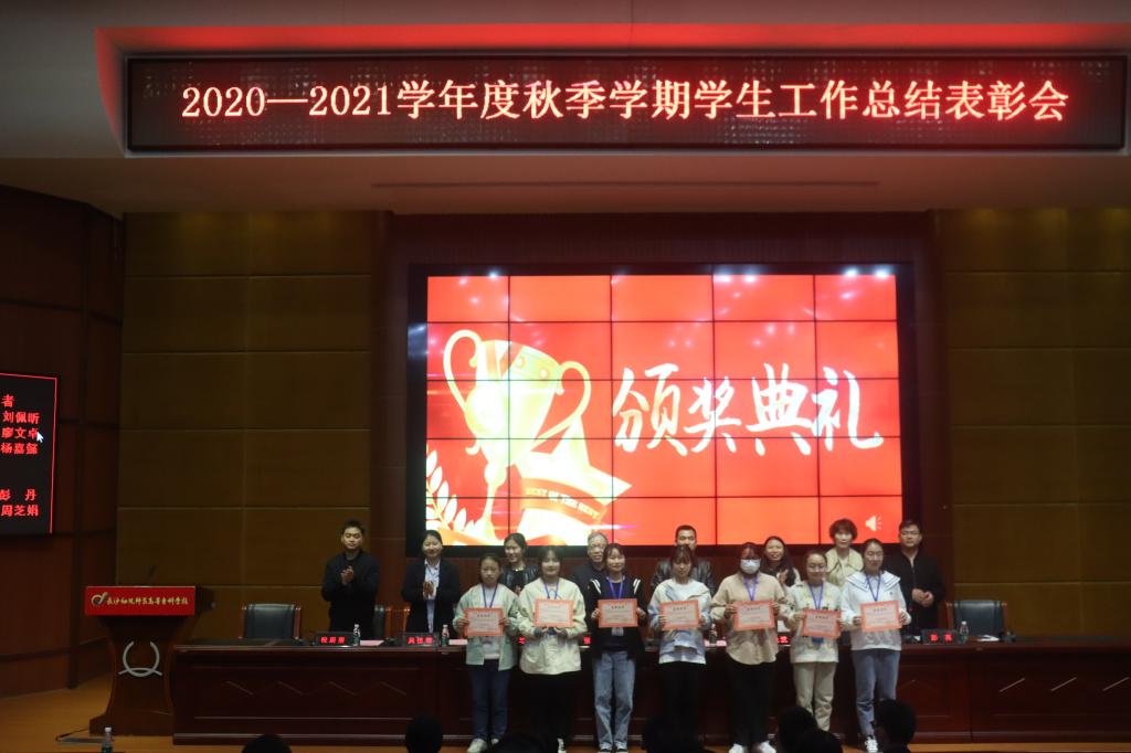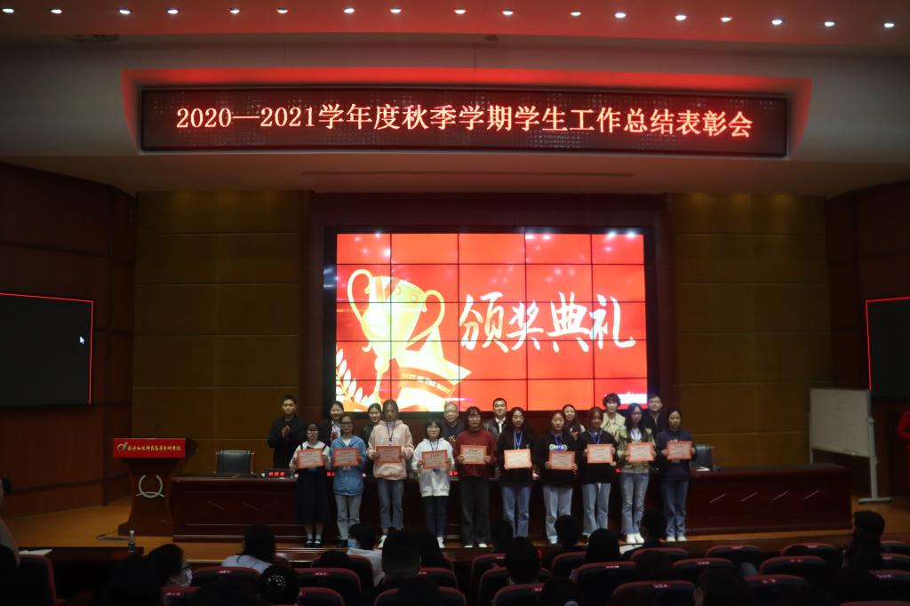 彭繁珍从2020级新生的入学教育、学生管理工作体系和学生获奖情况等三个方面展开学生工作总结。祝居里宣读总结表彰决定。