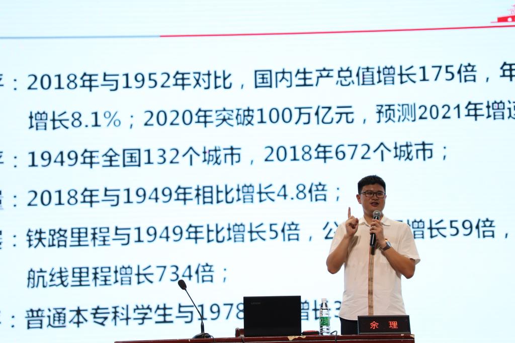 余理以“青年人生价值观”为主题,从中国特色社会主义制度、中国共产党的诞生、中国共产党的建设、中国崛起的艰辛历程四个方面展开🧛♀️,通过现场提问🧑🏿🍼、视频展示的方式,用幽默风趣的语言🦹🏽♀️、丰富的经验故事和强大的知识储备,让现场的师生们深切的感受到了中国共产党从站起来、富起来到强起来,感受到了中国特色社会主义制度中“人民至上”的优越性,感受到了能够作为一个中国人的自豪与自信!