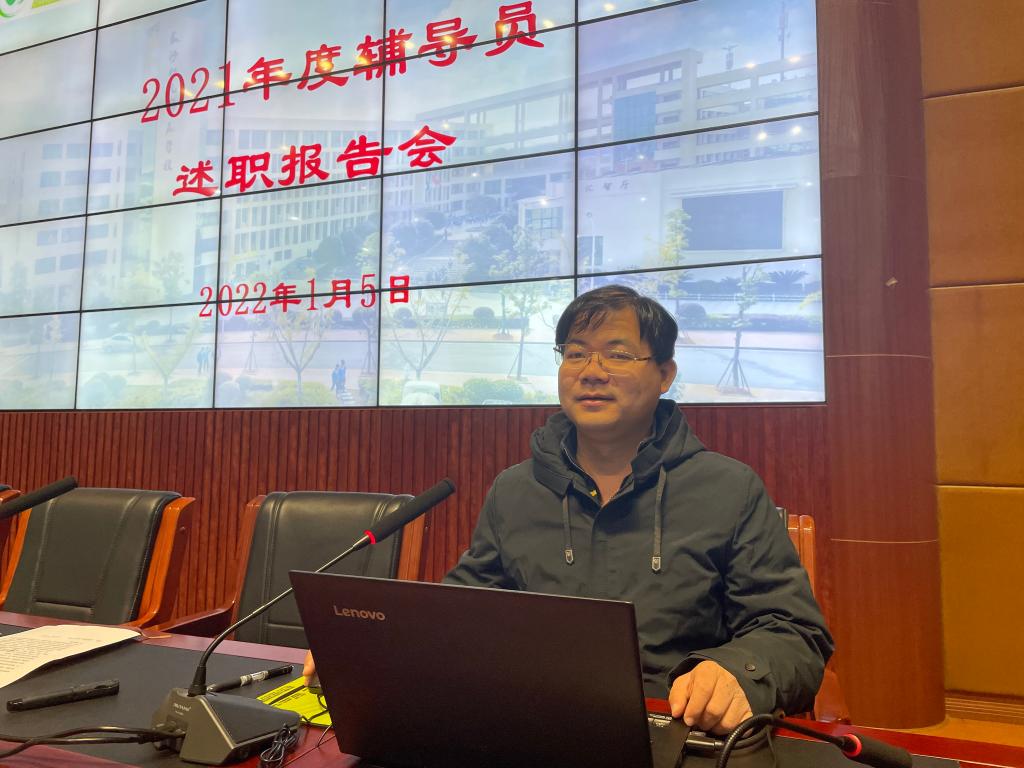 9名辅导员依次述职,总结工作实绩、展示工作亮点、分享工作经验,或娓娓道来,或慷慨激昂,黎晓林的“三全育人”+“三全管理”,银伶的网络思想政治教育、班级“微文化”,方祥的“懂心、用心、融心”攻心三部曲等精彩陈述博得现场阵阵掌声,每个辅导员都将2021学年所做、所学、所想、所得进行了系统地整理和思考,明确了下一步工作思路,声情并茂地展现出我校辅导员队伍积极向上的精神风貌和过硬的职业素养。