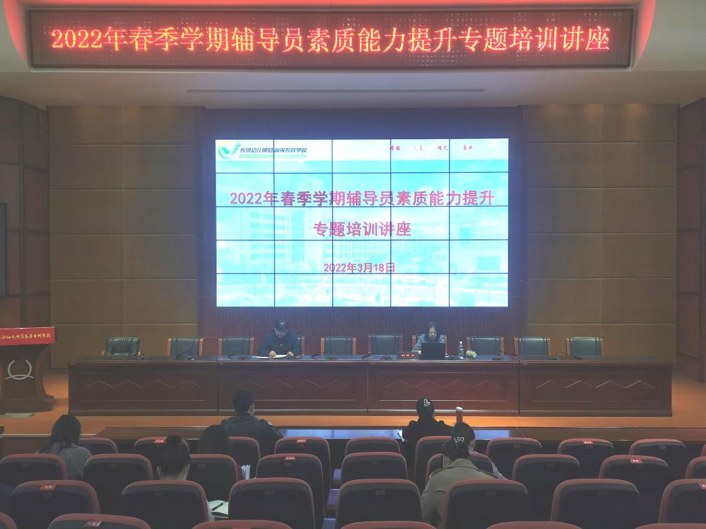 为提高我校辅导员的理论素养和工作能力,加强辅导员队伍建设🪠,3月18日上午🧑🏿💻,我校在汇智厅举行了2022年春季学期辅导员素质能力提升专题培训,特邀湖南省第七届辅导员素质能力大赛决赛特等奖获得者刘乔丹老师进行了主讲🏌🏿♂️。副校长文孟飞、学工处处长彭繁珍、副处长彭亮、公共课部主任张胜春、各系德育主任👐🏿、全体专兼职辅导员、学工干事及相关老师参加了学习,讲座由彭亮主持。