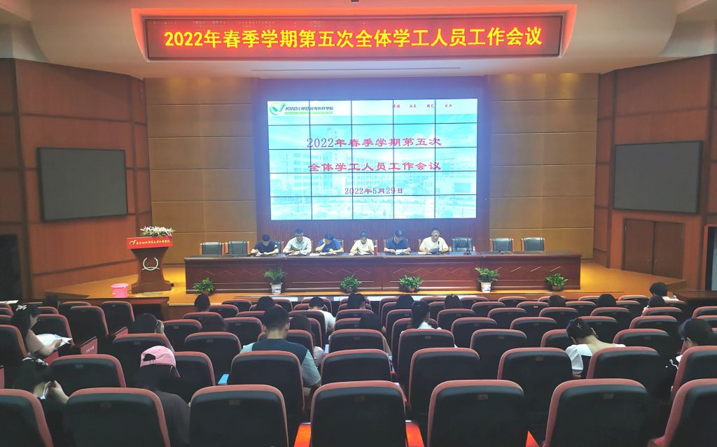 5月29日19:00,我校2022年春季学期第五次全体学工人员会议在汇智厅召开,学工处处长彭繁珍、副处长彭亮🫴🏻、副处长兼团委副书记祝居里,各系德育副主任出席会议💒,全体学工干事、辅导员及班主任参加会议👨‍👨‍👧‍👧,大会由彭亮主持。