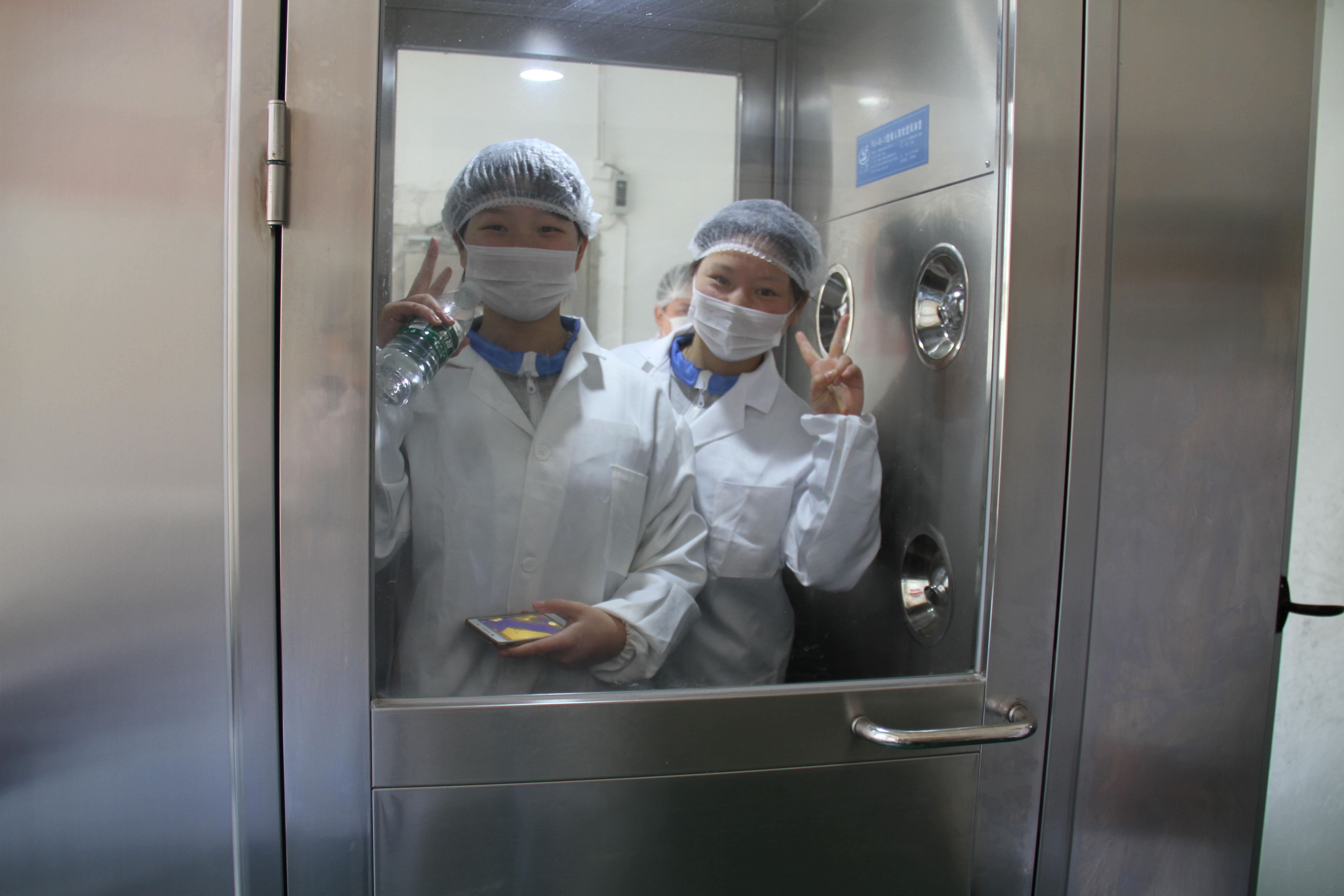 在学生科周曦科长和总务科黄昊副科长的带领下,4位老师和20名学生分两批,在工作人员的引导下,穿戴好工作服及工作设备,通过清洁消毒后,进入中央厨房。参观检查了厨房的存储间🩱、清洗池的硬件设施情况👩🏻🏫,清楚地看到整个后堂干净整洁🧘🏻,清洗池明亮卫生🏊🏼♂️,工作人员全部配有专用工作服🧚🏻;然后对厨房餐具🌑、消毒用具、菜品质量检验等进行了全方位的检查,其中消毒设施样样齐全🚣,蔬菜都为绿色蔬菜,所有面点也是机械人工流水线制作💳。