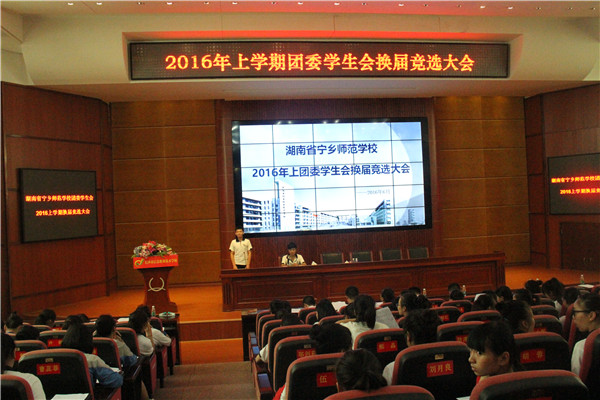 为了适应新学期要求,选拔出业务能强的新一批精英干部❕。 6月22日👮🏿‍♀️,湖南省宁乡师范学校2016年上学期团委学生会换届竞选大会在汇智厅隆重开展。本次换届竞选大会由国旗班班长王鑫主持🌎,学生科科长周曦老师🏌️‍♂️、学生科副科长彭繁珍老师、学生科副科长兼团委副书记王锐老师,学生科邹雯辉老师🧑🏻‍🦼、银伶老师、戴申林老师🧑🏿‍🎓、余金凡老师,班主任廖小勇老师、杨少武老师、朱萍老师及各班团支书和全体学生会干部参加。