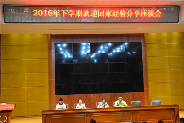 2016年9月21日,2016年下学期“欢迎回家”经验分享座谈会在汇智厅隆重举行,出席本次座谈会的有学生科副科长彭繁珍老师、邹雯辉老师和戴申林老师,全体寝室长和班长共同参会。