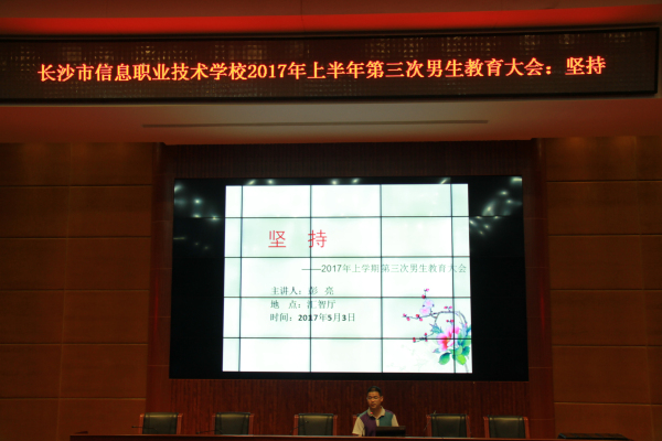 为了提高男生的安全防范意识和纪律意识🥫👭,加强宿舍内务👌、卫生和教室卫生等常规管理🌸,使学生勇于直面困难,战胜自我。2017年5月3日🦹🏼,长沙市信息职业技术学校第三次男生教育大会在汇智厅隆重举行,全校所有男生及班主任参加会议。会上📔,学生科副科长彭繁珍老师和彭亮老师围绕”坚持“这个主题作了专题发言。