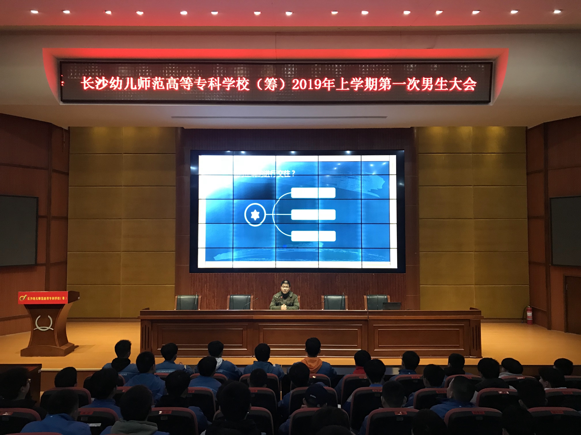 为了提高我校男生的安全和纪律意识,培养我校男生良好的生活习惯和精神风貌,进一步加强寝室内务和卫生管理, 我校于2019年3月3日晚在汇智厅举行了2019年下学期第一次男生大会,参加本次男生大会的有全体男生班班主任及全体男生,学生科王潇翔老师和学生科副科长彭亮相继发言。