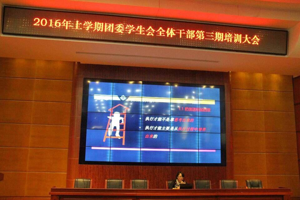 5月26日☕️,2016年上学期长信团委学生会第三期干部培训大会在汇智厅举行,本次培训大会以“没有执行力⏰🙆♀️,就没有竞争力”为主题,全体学生会成员参与会议🈵🌁,银伶老师为主讲人🧙♂️。