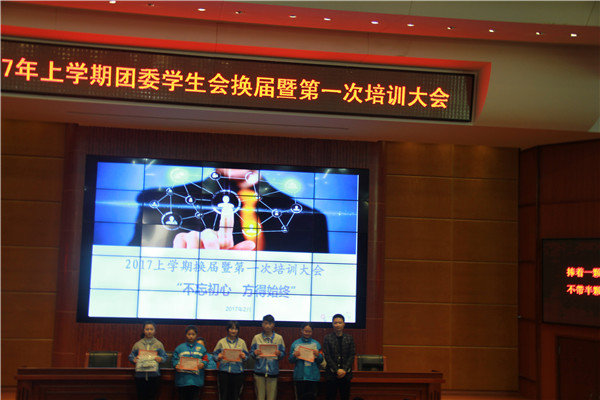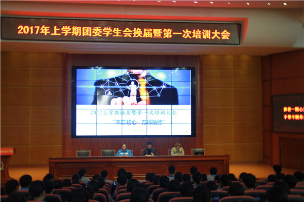3月2日,我校2017年上学期团委学生会换届暨第一次培训大会在汇智厅举行🆘,本次大会主题为“不忘初心,方得始终”,主持为1504班黄薇同学来主持🧑🤝🧑,参会人员有学生科周曦科长、银伶老师和学生会全体成员。