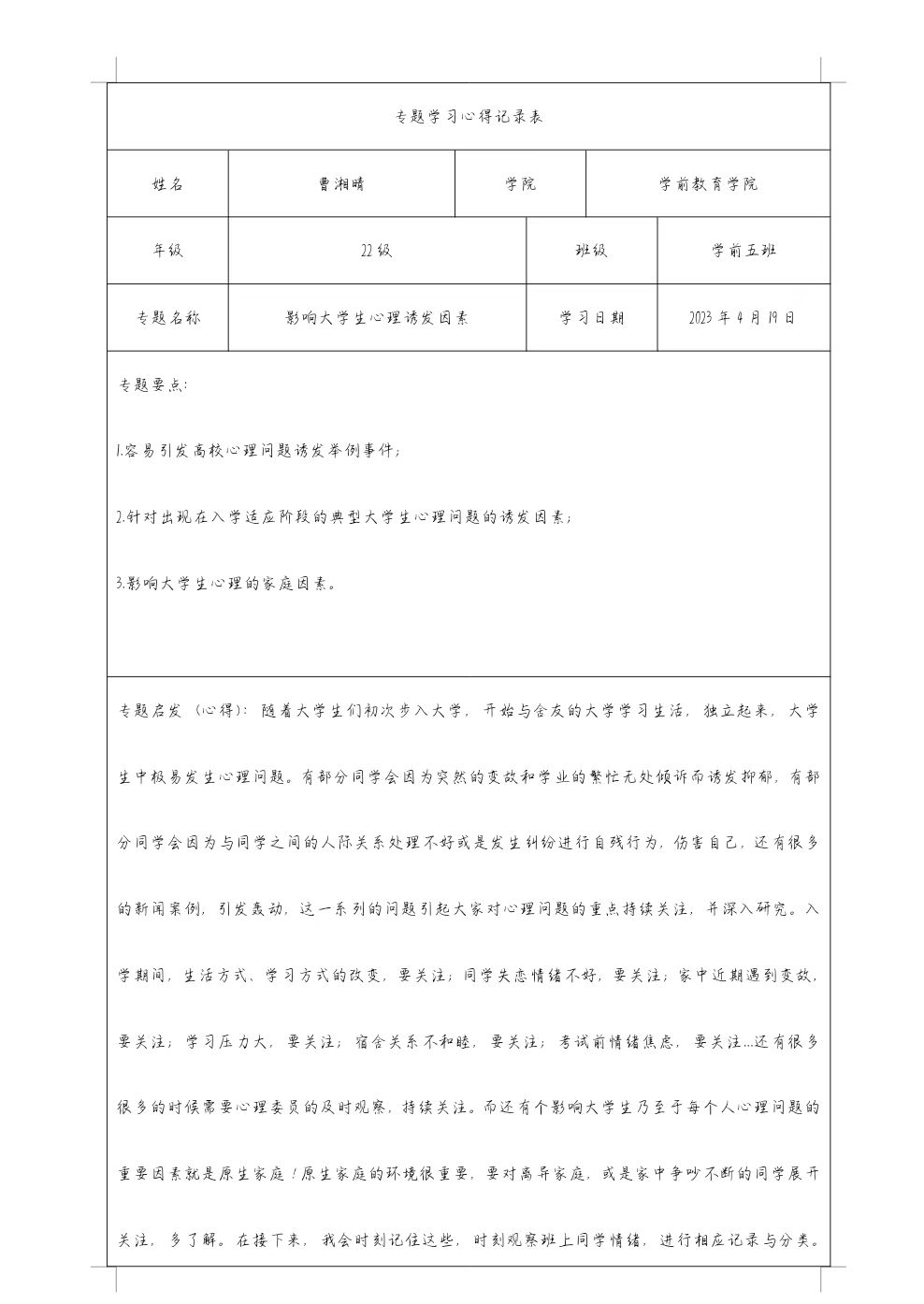 开展专题学习,普及知识,提升能力。为了提高辅导员对学生心理问题的识别和干预能力🍩,心理发展指导中心特邀长沙理工大学心理健康教育中心专职教师⛔、中国心理学会注册师易敏来校开展《大学生心理问题的识别与应对》专题讲座,指导我校心理专干及辅导员们精准、高效开展心理健康工作。此外,我校还派遣心理发展指导中心主任彭亮、心理发展指导中心专职教师彭申珍赴吉首大学、湖南应用技术学院交流学习👊🏼,通过座谈交流🔮、案例会诊👎🏿、讲座培训等形式,进一步加强心理教育教学🪳、心理咨询、危机防控等专业技能🦷,为我校心理健康教育工作夯实基础。