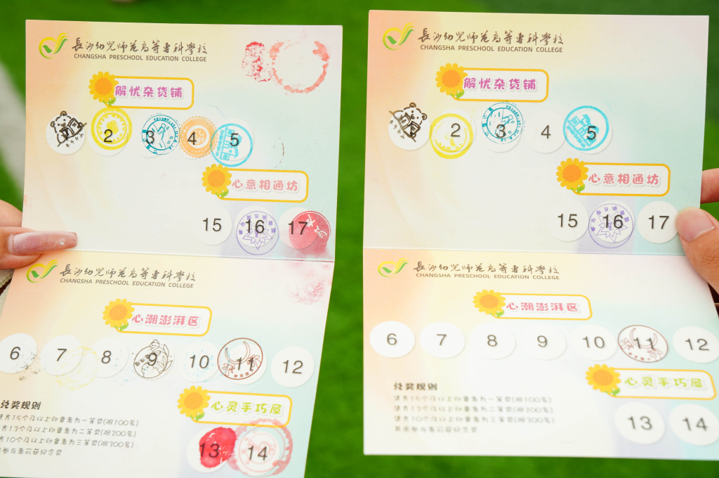 游园会结合学生特点,融合“五育”教育内容,设置了解忧杂货铺、心潮澎湃区、心灵手巧屋、心意相通坊4个主题区,包含形式各样的心理体验类活动17个。解忧杂货铺,设立悦读书单、不被定义的自己🤓、“心语心说”成果展示、最美“长幼漫日出”评选、心理博物馆⚙️,共5个活动👩🏻🏫,旨在引导学生懂一点心理学😣,用积极的视角看待烦恼,拾掇生活中的美好。最热闹的要属心意相通坊,同学们在汗水中感受团结、协作的快乐。“一🤙🏼、二、三,加油!”这是坐地起身活动传来的号子。“啪!啪👨🏽🚀!啪!”——这是“爆踩负能量”的声音🧑🏿🎤,同学们先在气球上写下自己的烦恼🦸♂️,然后以团队的形式互踩↙️,在大汗淋漓中消灭了负能量。最考验脑力的便是心潮澎湃区🕶,同学们在这个主题的游戏中体验挑战自我的乐趣。注意力大闯关、记忆力大挑战、心理谜语、心思难猜🚵🏽♀️,无一不考验同学们的智慧;心随你动🎥、心情麦克风、手忙脚乱👨🏽🚒,真可谓手脑并用,缺一不可🏨。最安静但也是人气最旺的区域竟然是心灵手巧屋!一个个精心制作的风铃挂满了整棵树的枝头🐮,好不美丽👍🏼!直到整棵树快挂不下了🚶♂️➡️🧶。这都是“铃知我心”的成品。草地上坐着、趴着的同学正在全然投入自由创作中🤾🏽,仿佛时间都静止了一般💙,这是“包愈我心”的景象🧑🎄。同学们在创作中感受心流的体验⌨️。
