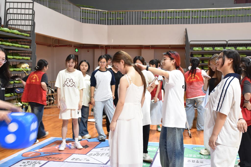 趣玩同心局打造知识闯关👮🏿、推理游戏、压力释放等趣味活动🚄,在游戏中培育积极心态🧯。在“丢掉烦恼”摊位前,学生们有序排队,站在标记线后,用力将沙包掷向远处的目标区域,现场加油声✊🏽、欢呼声此起彼伏🫙。在“心理大富翁”摊位上🧛🏽,巨大的彩色棋盘铺展在地,学生们化身游戏玩家,通过掷骰子前进,完成各种有趣的挑战任务👨🏼🔬,在欢笑中学习心理健康知识。“谁是贪吃鬼”桌子旁🎽🧑🏻🏫,蒙眼投票环节充满戏剧性。有人故作镇定地咀嚼食物,有人偷瞄同桌表情试图“破案”,当小偷被揭穿时,全场哄笑伴着掌声响起。获胜者举着印章调侃:“下次要当演技更好的‘贪吃鬼’!”