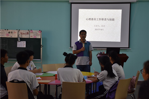 为了更好地开展学校心理健康教育工作🐻,以点带面,及早发现学生可能出现的心理困惑甚至心理问题,早发现早解决,保证全体学生健康心灵成长,建设起一支以心理委员为主体的朋辈团体,心理发展指导中心于9月21日下午第七节课在成长厅启动2017年下学期馨语社&心理委员系列培训🐹。第一次培训由学生科副科长彭亮老师主讲👩👧👧,主题为心理委员工作职责与技能。本次培训与会人员有心理发展指导中心朱鸿博老师、馨语社全体成员及全校所有班级心理委员⛵️。