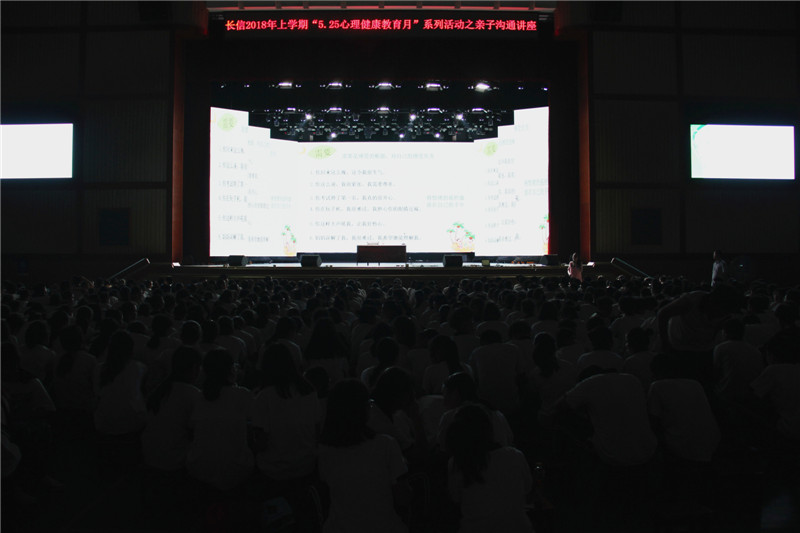为了协助高一学生更好地与父母沟通,让同学们理解父母感受,感知父母需求,共建良好亲子关系,5月16日晚18:40,2018年上学期5· 25心理健康教育月系列活动之亲子沟通讲座在汇美馆隆重举行。本次讲座由心理发展指导中心朱鸿博老师主持,主讲嘉宾为学前教研组组长林静老师,对象为高一年级全体学生。副校长周文华,学生科彭亮、戴申林及高一全体值班老师与会。