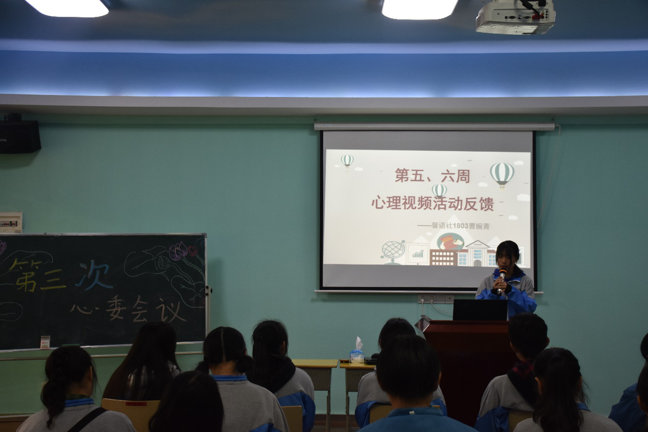 最后,曹婉菁总结了第4、5周心理视频宣传活动🧛🏻‍♀️,大部分心委都积极组织了心理视频宣传活动🚀,并引导学生思考视频内容𓀅,从中获得某方面的心理健康知识♥️。