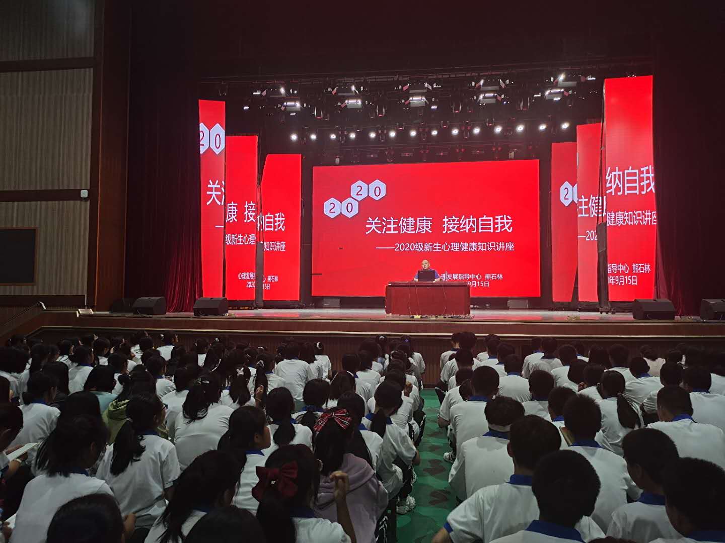为了引导2020级新生更好地适应职高生活🍲,维护其身心健康发展,2020年9月16日晚7点🏍,我校心理发展指导中心在汇美馆开展了一场以“关注健康🐉,接纳自我” 为主题的2020级新生心理健康知识讲座,本次讲座由心理发展指导中心心理老师熊石林主讲🦸🏽。