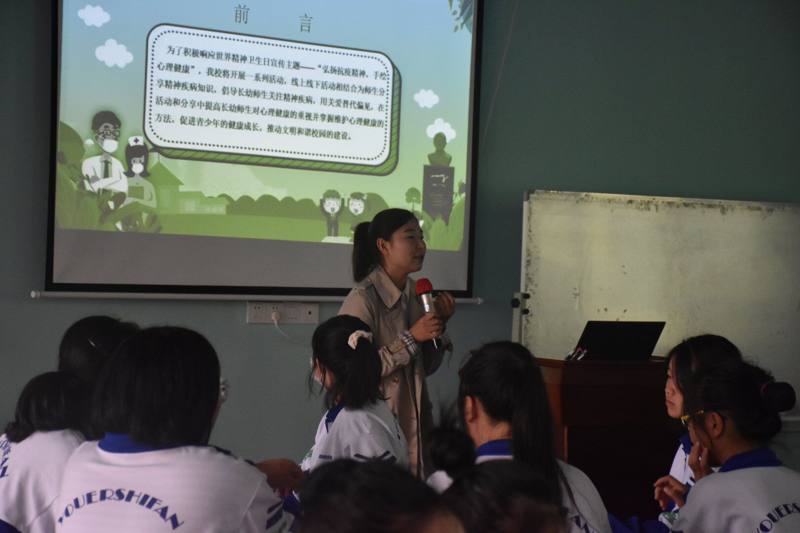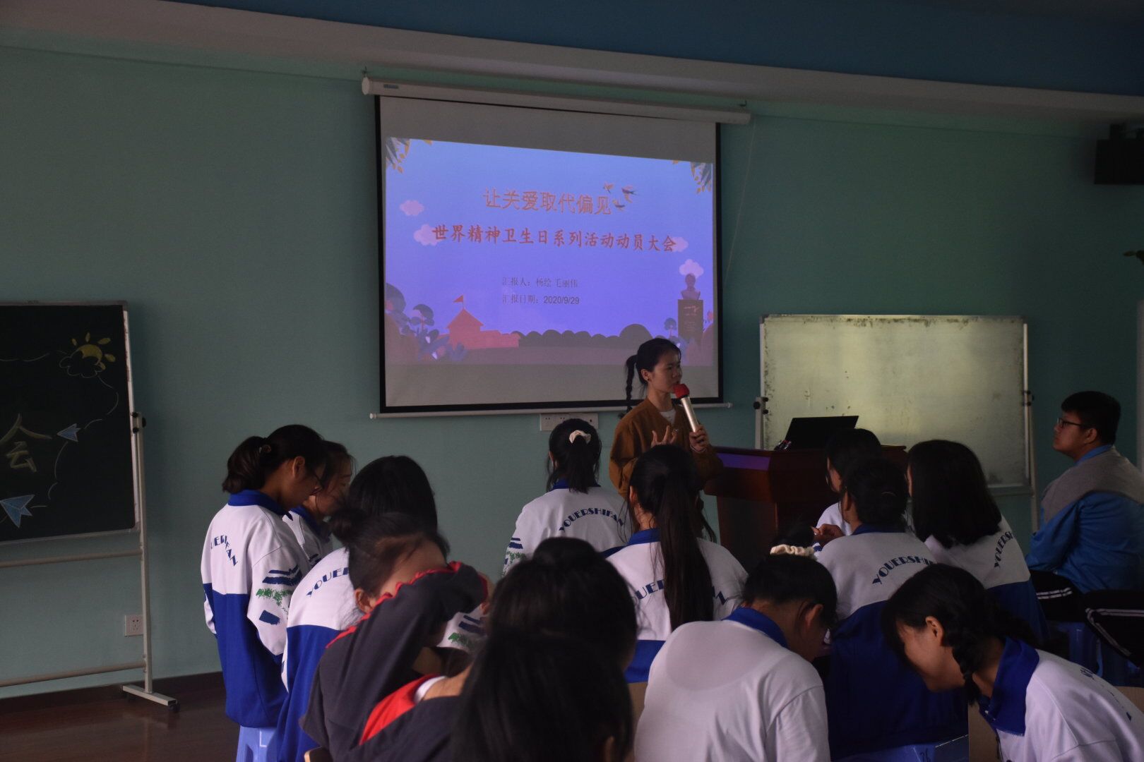 每年的10月10日是世界精神卫生日⏩,2020年的主题为“弘扬抗疫精神,护佑心理健康 ”,旨在弘扬攻坚克难的伟大抗疫精神🤞🏽,进一步提升全民精神卫生和心理健康意识。为积极响应国家卫健委的号召🧕🏽,达到提升我校师生精神卫生和心理健康意识👨👩👦👦,我校将利用精神卫生日这一契机开展心理健康系列活动。为此,9月29日中午12:50,心理发展指导中心组织开展了2020年精神卫生日心理健康系列活动布置会暨第二次心理委员会议,学生会心理部和全体心理委员参与,心理老师杨绘和毛丽伟主讲,会议由心理老师周威主持。