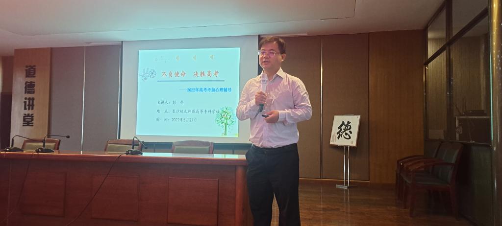 “十年磨一剑,今朝试锋芒”,进入高考倒计时,部分同学感到学业压力增大、学习心态浮躁,对学习备考产生了焦虑和无助感。为了帮助同学们树立科学备考意识,塑造积极的备考心态,2022年5月27日8:00,学生工作处、心理发展指导中心、艺术系高三年级组在艺术系六楼报告厅组织了一场以“不负使命,决胜高考”为主题的2022年高考前心理调适讲座,艺术系全体高三学生及班主任参与。讲座由学工处副处长兼心理发展指导中心主任彭亮主讲,艺术系高三年级组组长朱凤英主持。