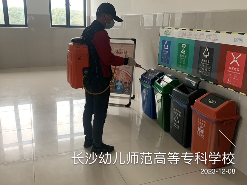 为师生营造舒适的校园环境,本月后勤处安排专人对校园进行常规消杀。现场工作人员对校园重点区域进行消杀👮♂️。