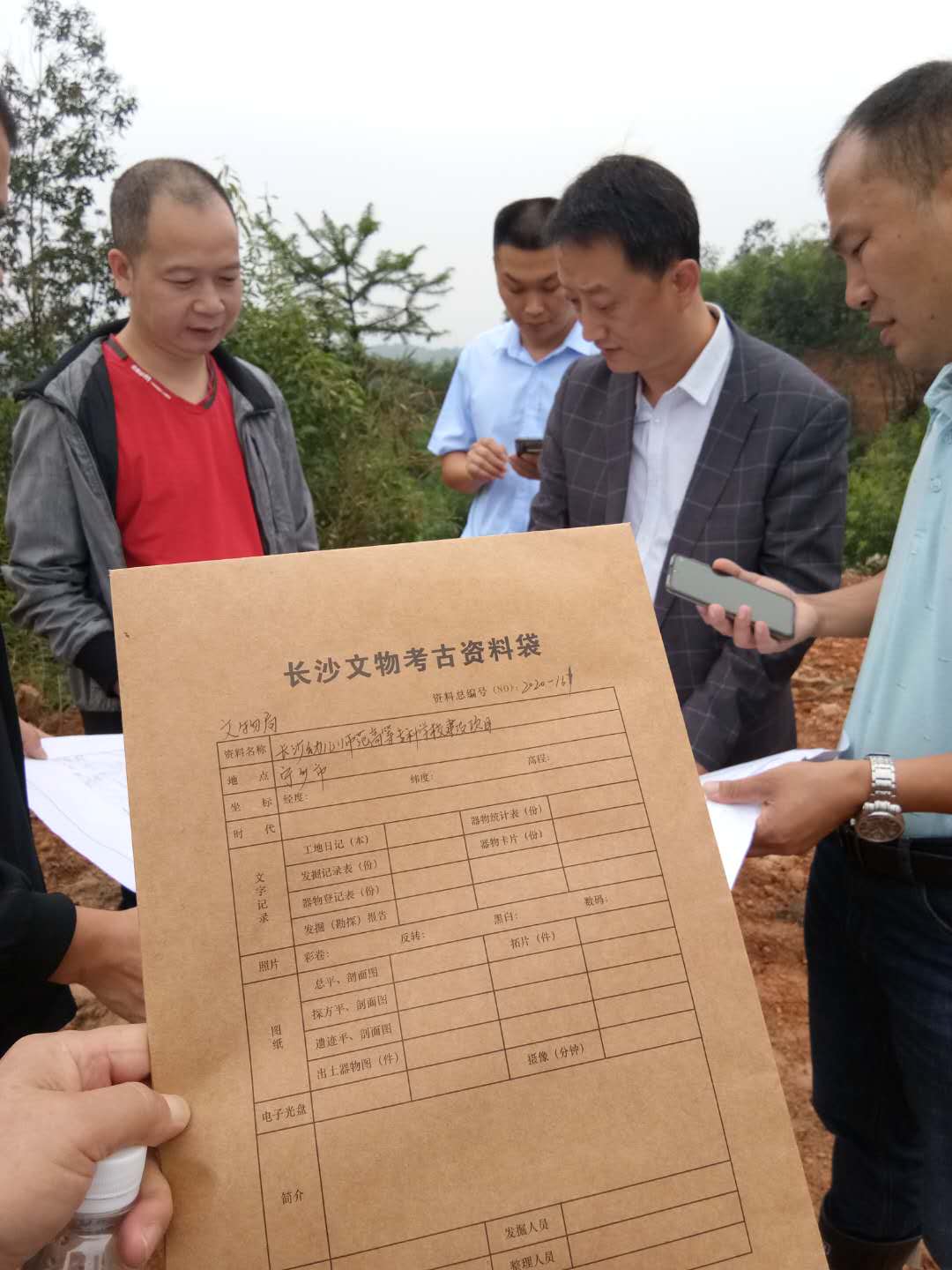 2020年9月25日,长沙市文物局文物考古队对新校区进行文考勘探工作,学校驻工地负责人、后勤财务处副处长朱志成代表学校对接勘探工作。