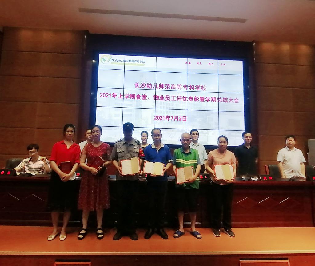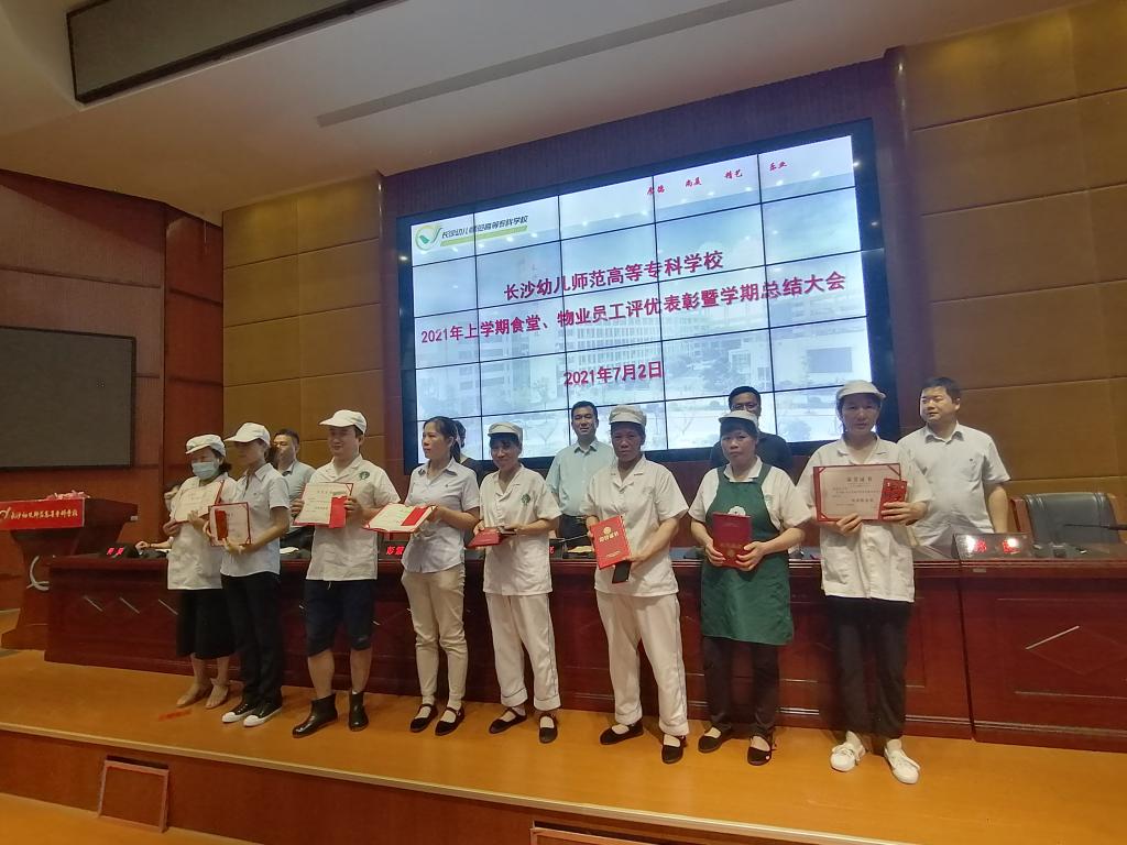 黄昊首先宣读了长沙幼儿师范学校2021年上学期食堂、物业员工评优表彰决定,对一学期来涌现出的优秀员工进行了表彰,肯定了大家对学校的辛勤付出与努力🚾。