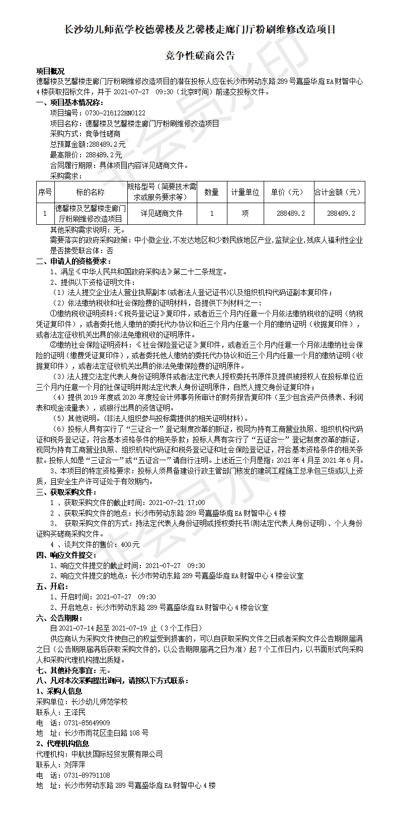 • 长沙幼儿师范学校德馨楼及艺馨楼走廊门厅粉刷维修改造项目