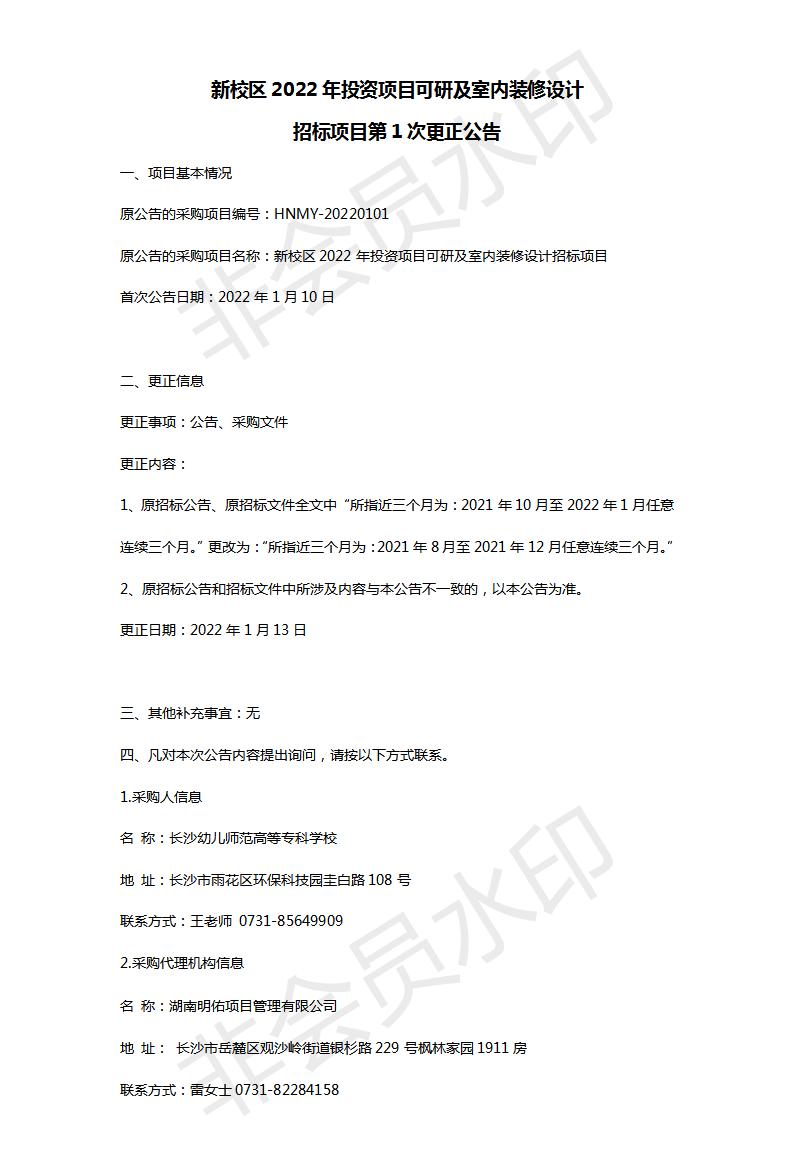 新校区2022年投资项目可研及室内装修设计招标项目第1次更正公告