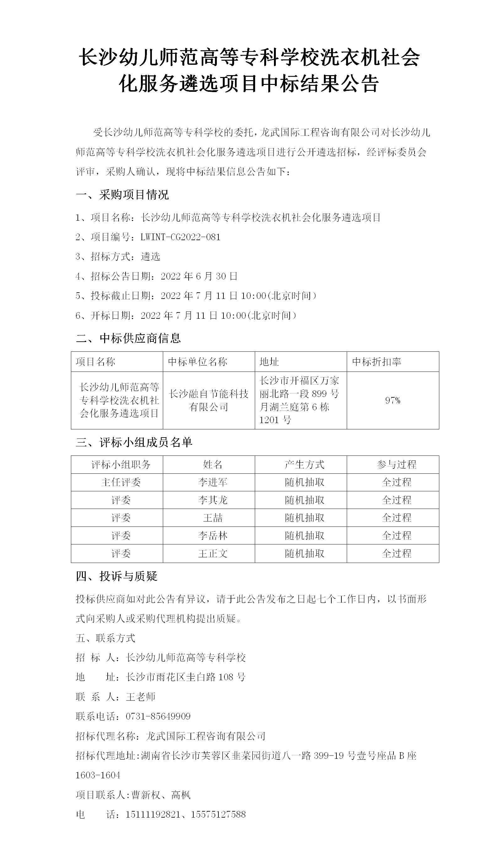 神彩争霸8安卓下老版本洗衣机社会化服务遴选项目中标结果公告