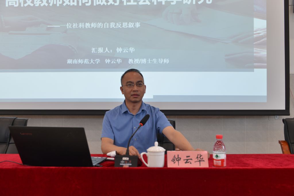 为进一步营造学校科研学术氛围,激发广大教师的科研积极性,提升科研能力,6月30日上午,我校举办了以“高校教师如何做好社会科学研究”为主题的专题讲座💃🏼。本次讲座由湖南师范大学教育科学学院钟云华教授主讲👩🍼,我校副校长文孟飞出席培训会议👩🦼✪,全校教职工参加培训,会议由科研处处长何曙光主持🐁🦜。