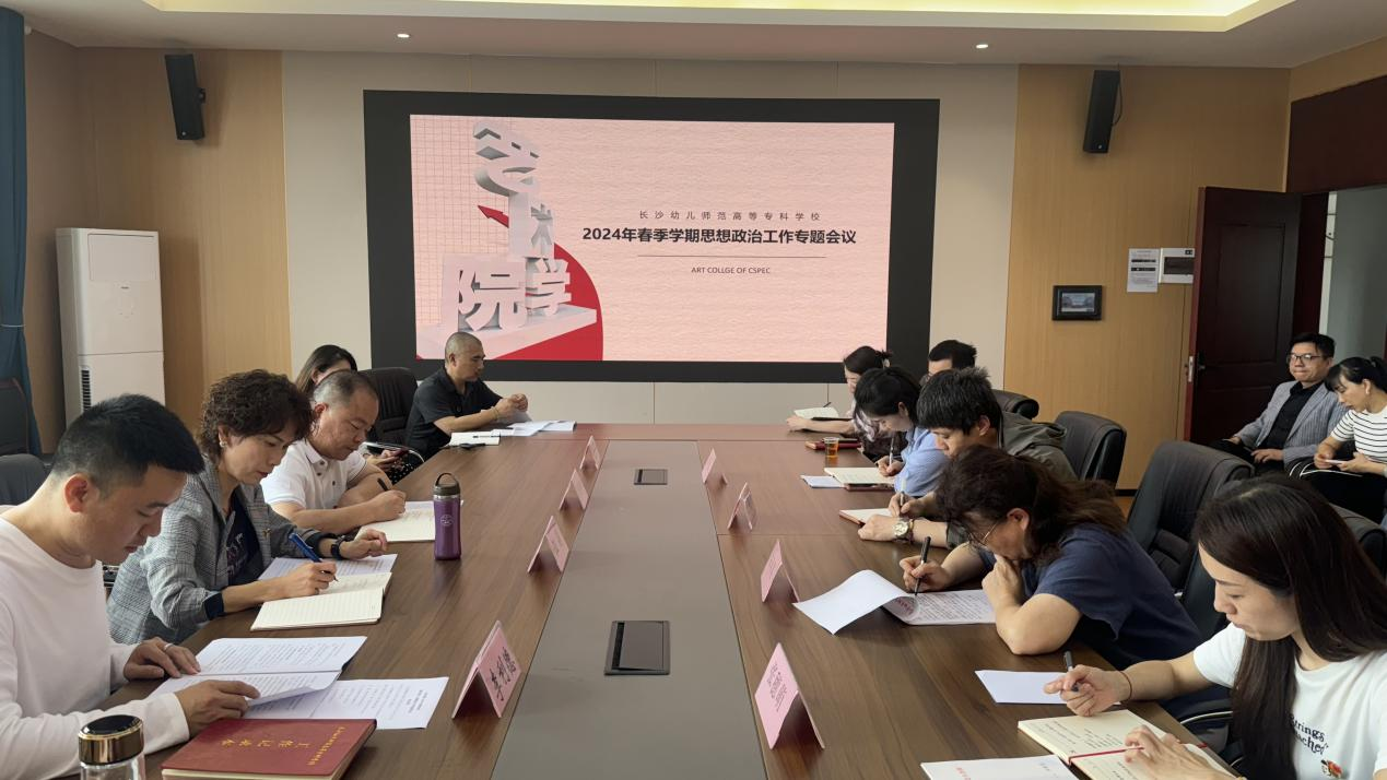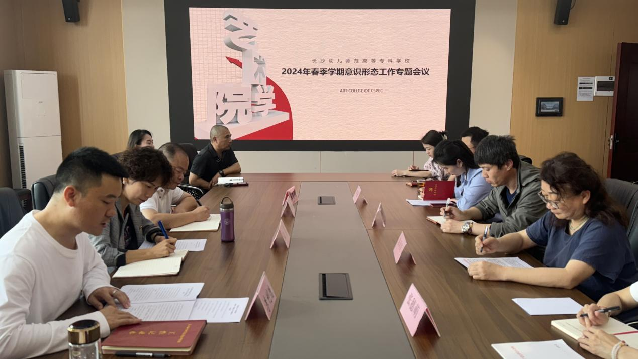 5月7日中午,艺术学院在艺馨楼A座210会议室召开2024年春季学期意识形态🦙、思政工作专题会议👮🏻♀️。学院所有班子成员,全体教研室主任🧖🏽♂️、专业带头人、辅导员代表以及全体党员教师🧔♀️,出席了本次会议,会议由党总支副书记李利德主持👂🏻。