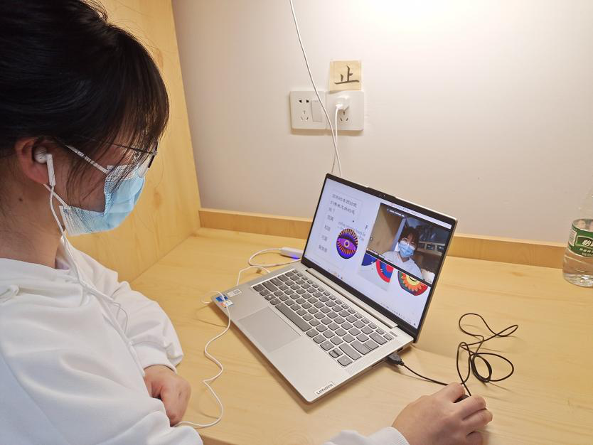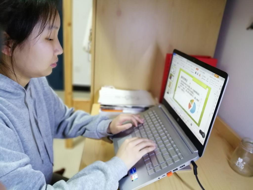 (上图 美术教研室党员教师樊荣正在线上授课)