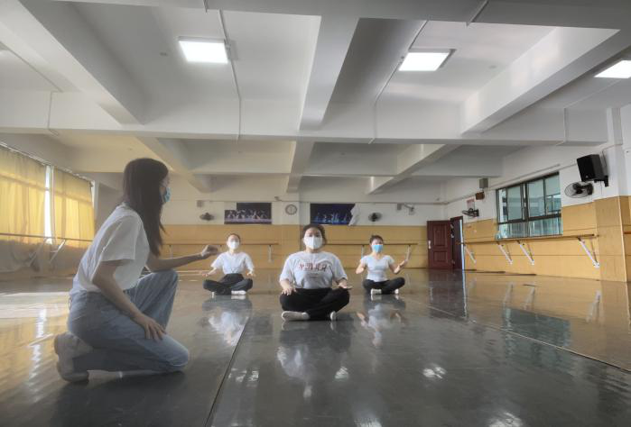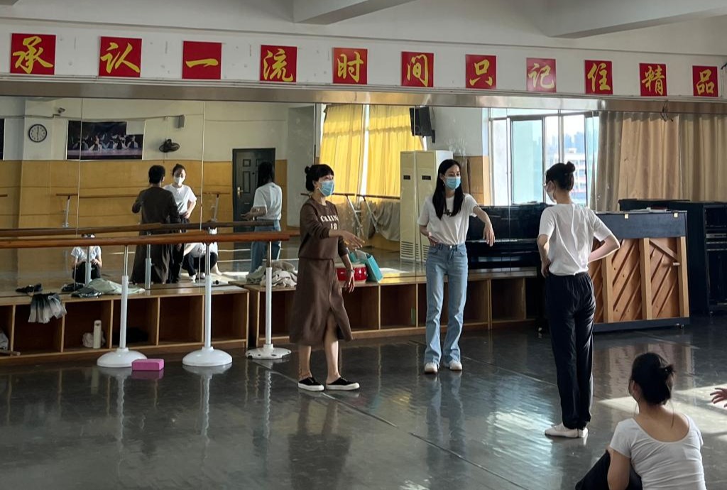 (上图 舞蹈教研室党员教师林资、张穗萌与学生制定线上教学计划)