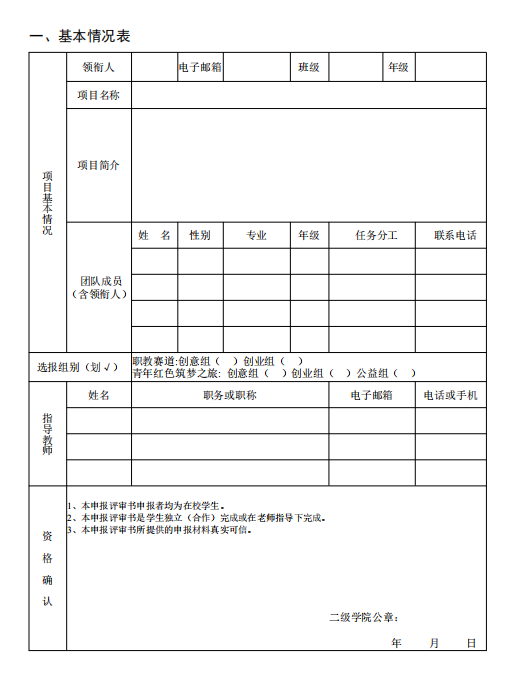 (附件参考模板)上传至大学生服务网。全部初赛报名须在平台