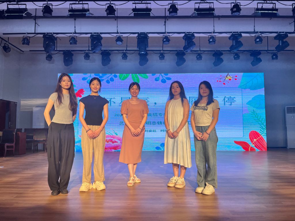 随后,四位成功升本的学姐——段玉婷、颜静、彭艺铭和王溢,分别上台分享了自己的专升本考试经验。段玉婷和颜静,两位舞蹈专业的优秀学生,成功考入湖南第一师范学院舞蹈表演专业。她们深入分享了备考过程中的心得和体会,特别强调了坚持练习和深入理解舞蹈内涵的重要性,并传授了应对考试压力和调整心态的宝贵经验。