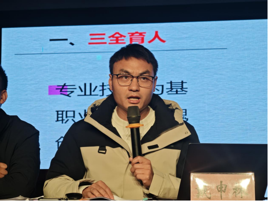 戴申林以“在育人中找到‘在场感’”为主题,结合学校在学管工作方面的任务安排,重点讲述了三全育人的内涵、现实困境与破局之道。他强调,要做到全员、全过程、全方位育人,教师们仍存在角色割裂、评价体系功利化等现实困境,要解决这些难点,重点在于要转变理念、明确职责,做到协同育人;宋志强从教学管理的角度,细致讲解了教师队伍在课堂上要准备的常规资料,强调了学校下达的多项关于规范师生在教学方面的规范制度,并对教师教学资料的完善进行了深入解析;李利德从实训室建设与管理、毕业设计、校企合作、毕业实习、技能抽查、师生竞赛、语言文字、党建工作等八个方面对2025年教学工作和党建工作进行了部署安排。