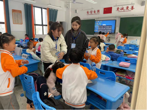 见习活动分为两个小队共19个小组进行。指导老师们热情地向大家介绍了自己的班级基本情况,安排了见习期间的工作。见习老师们觉得小学的孩子们非常的可爱,像“小天使”,当他们第一次走到同学们中间,既兴奋、又紧张。在教室里、在操场上,见习老师们和活泼可爱的小同学们在一起,组成了一道美丽的风景。