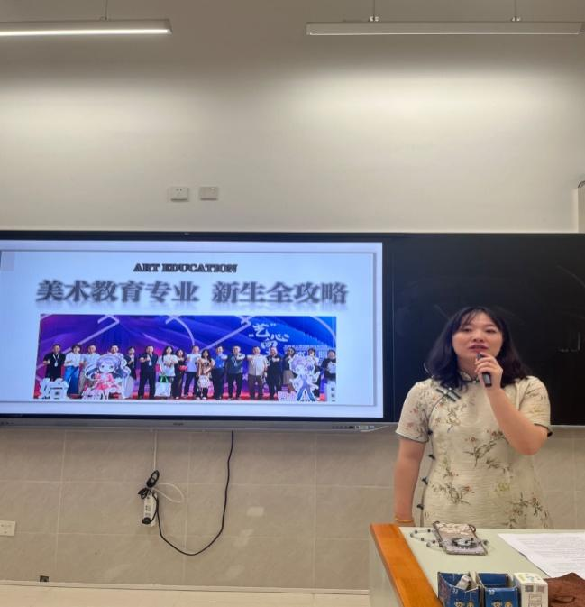 随后,美术教育专业带头人王艺伟对于新生入学教育进行讲座,针对美术教育专业背景、人才培养目标与规格、课程体系与建设、教学模式与方法、师资队伍建设等做出详细介绍🙌🏿。并对于美术教育专业教学管理🧍🏻‍♂️⚄、专业特色及创新👬🏻、学生就业前景给出建议。最后,王艺伟给新生详细的介绍了我校教务系统的使用方法🚵🏼‍♂️,并鼓励同学们发挥自己的才华和热情🦊,为未来的专业学习和社美育会工作增添更多的色彩和温暖👬🏻。